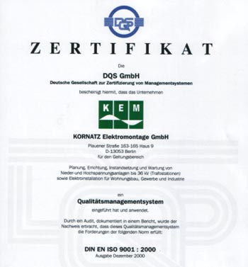 Das Qualitätsmanagement unserer Firma wurde in diesem Jahr durch eine Zertifizierung gemäß DIN EN ISO 9001 nachgewiesen.